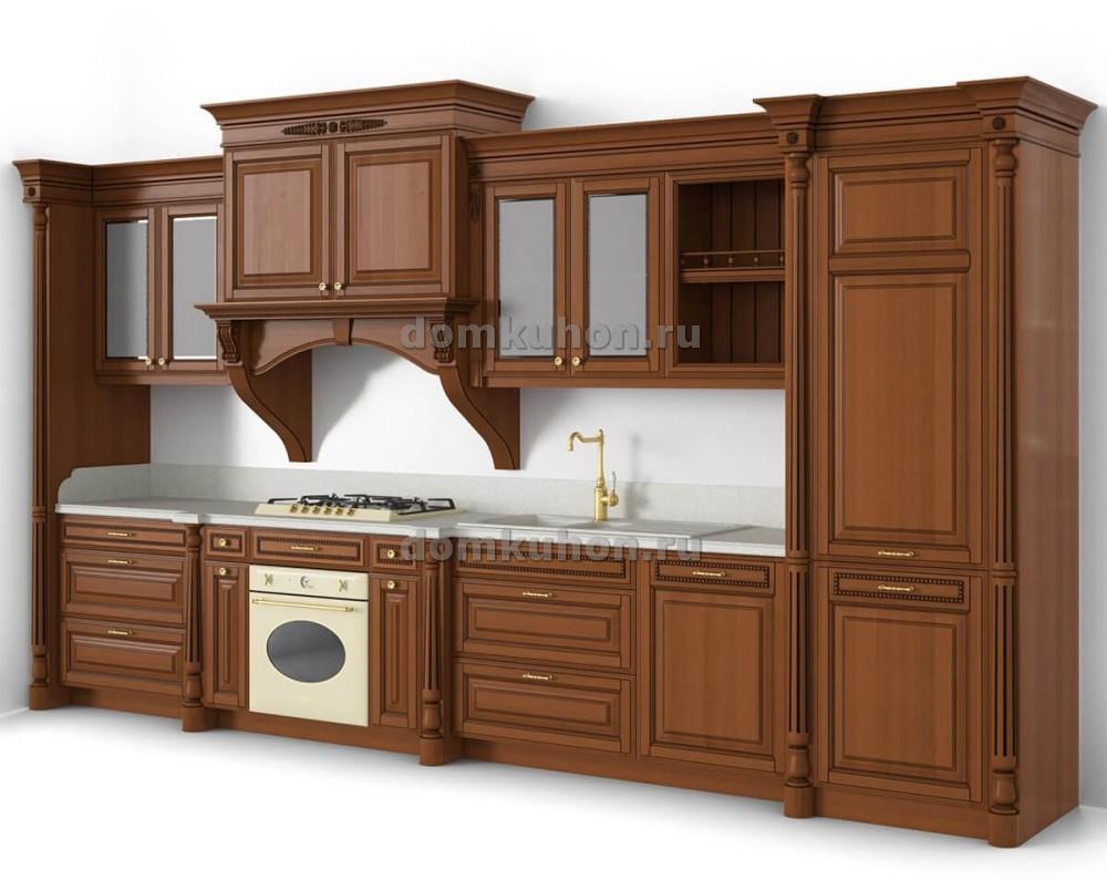 "Франческо" - это синоним традиционного вкуса и роскошной изысканности. Эта прямая кухня, выполненная в насыщенных оттенках благородного каштана, источает тепло и элегантность классического дизайна. Сочетание плавных линий шкафов и роскошных золотистых ручек добавляет интерьеру статусности. Идеальна для любителей винтажа и безвременного стиля, эта кухня превратит приготовление пищи в настоящее искусство.